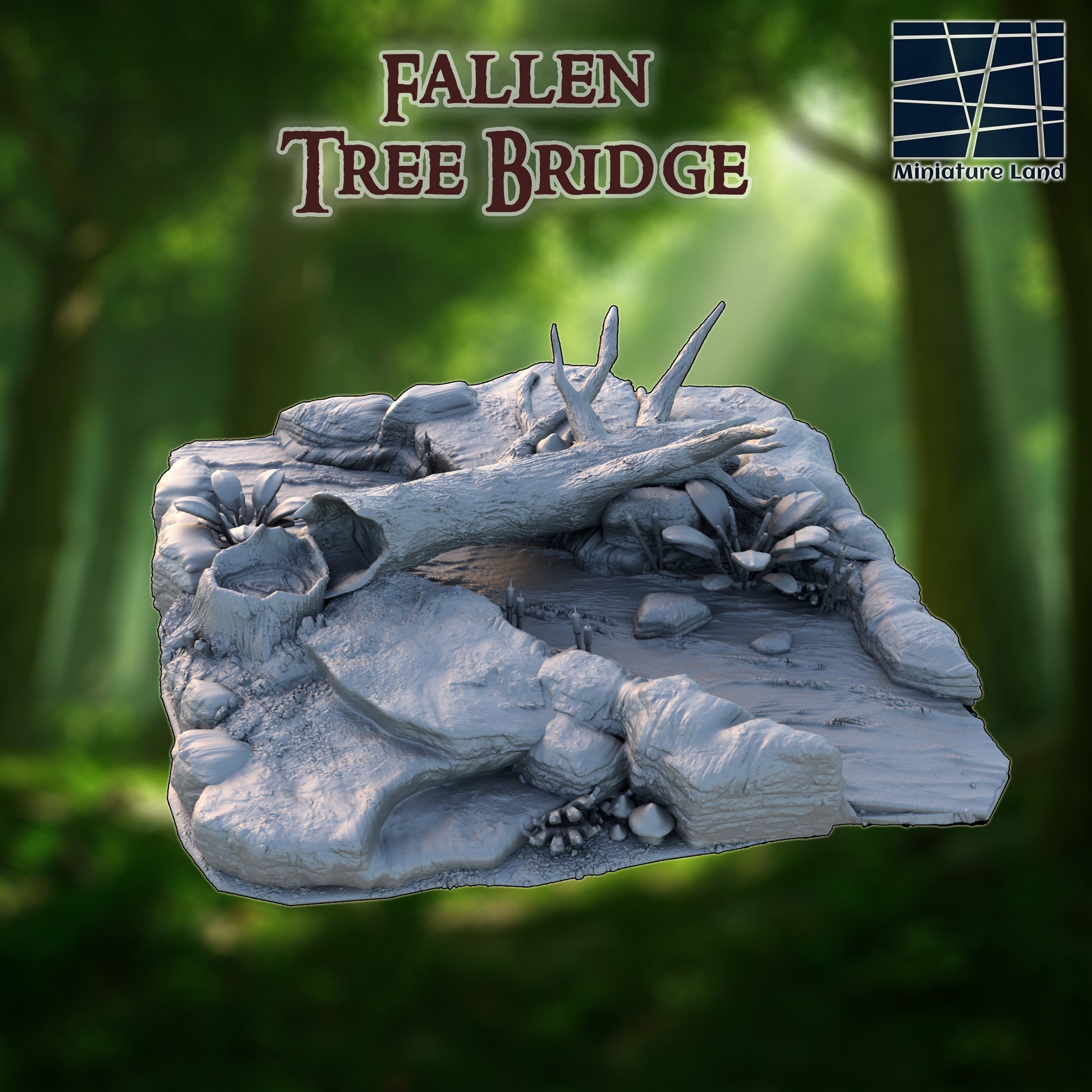 Fallen Tree Bridge Tabletop Terrain | 3D Printed for D&D and RPG Tabletop Gaming | Nature Obstacle Miniature, Forest Terrain, Dnd Accessories