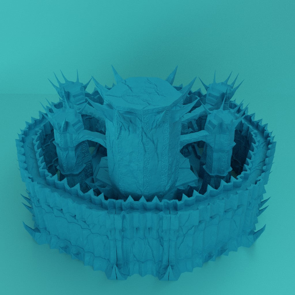 Elevate your dark fantasy campaigns with the Necropolis Citadel, a captivating 3D printed DnD terrain masterpiece that's ideal for epic undead sieges and RPG storytelling. This Warhammer terrain accessory, crafted from robust PLA plastic in an unpainted finish, embodies the grim allure of a fortified necromantic stronghold, making it a standout in your arsenal of DnD accessories.