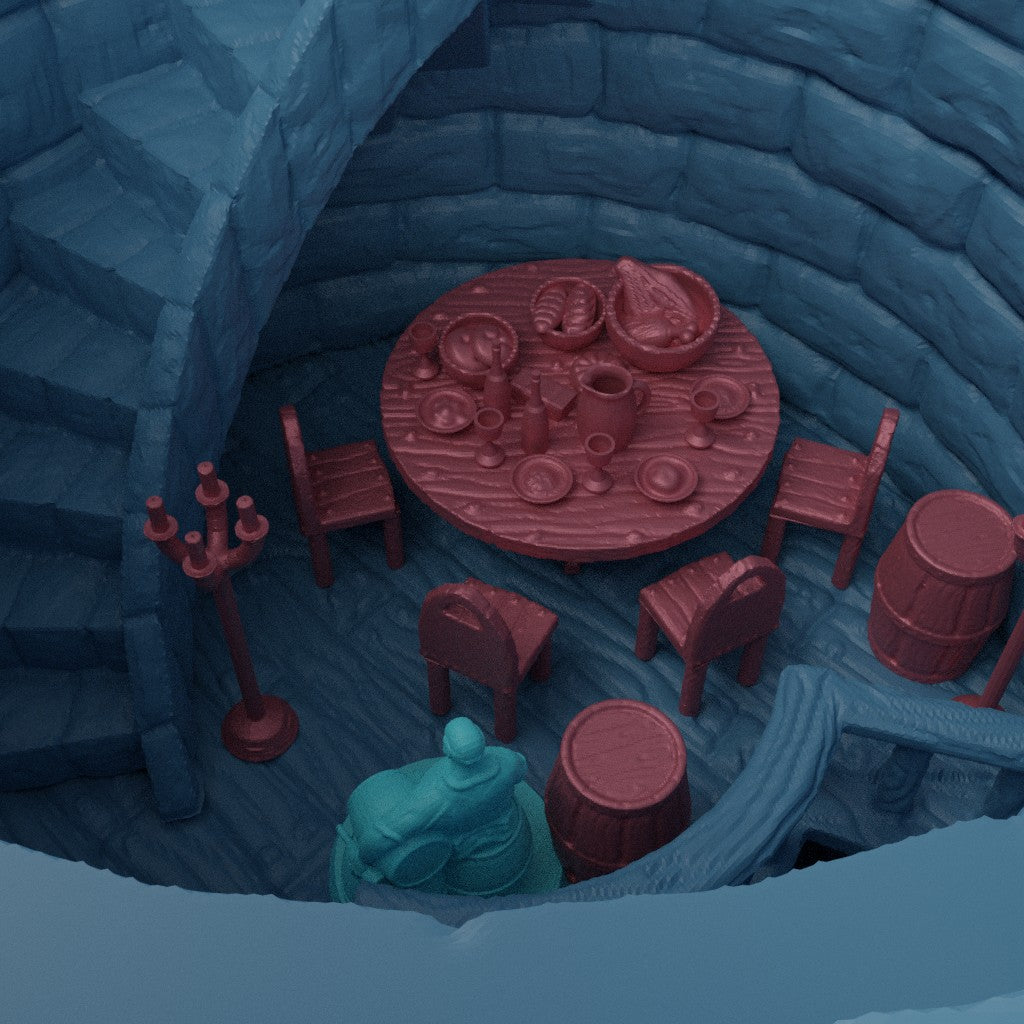 Made with precision 3D printing, the tower includes multiple interior levels with furniture and a battlement top, making it a standout Dnd terrain piece or Warhammer scenery addition. Compatible with various RPG systems, it’s perfect for creating epic scenes in Age of Sigmar and beyond. Add this durable and imaginative terrain to your collection today!