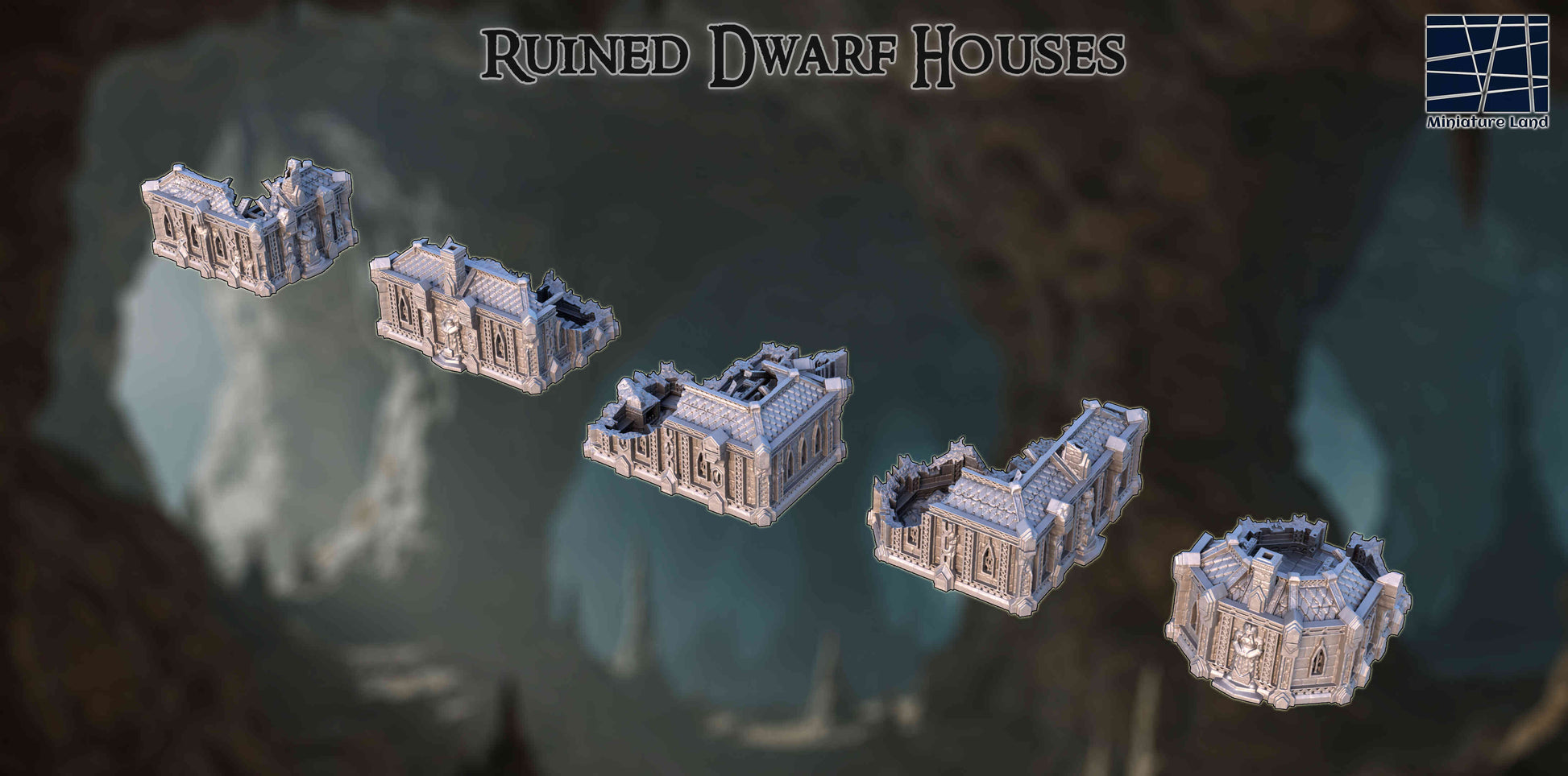 3D Printed Ruined Dwarf Houses Tabletop Terrain Set - Modular Fantasy Ruins for D&D, RPG, Wargaming Miniatures - Dwarven Terrain Scatter Pack